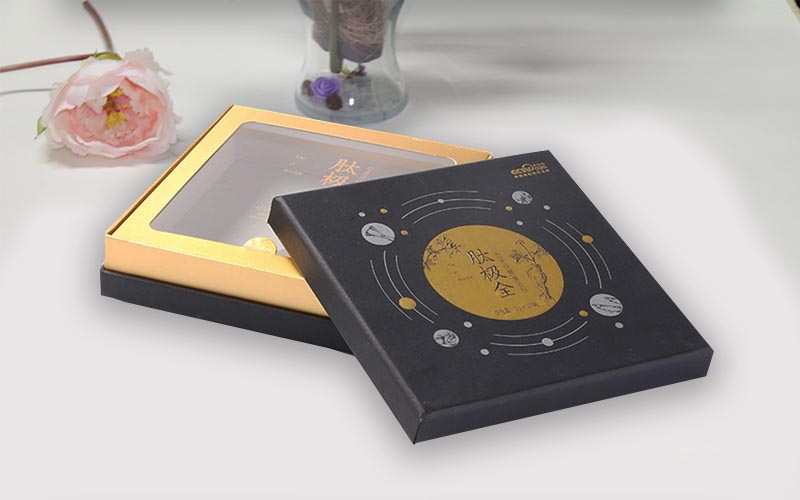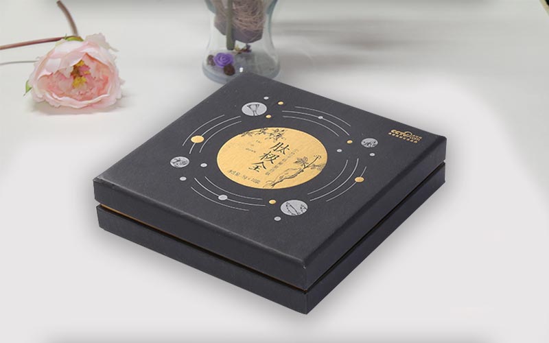 1.材質:黑色特種紙文字LOGO燙黃金,和絲印白墨,裱1500G雙灰闆盒子中間一條金色圍條,盒型爲上下天地盒,盒子内托做一個金色卡紙粘一層牛油紙,打開産品看著更加有一層神秘感 。