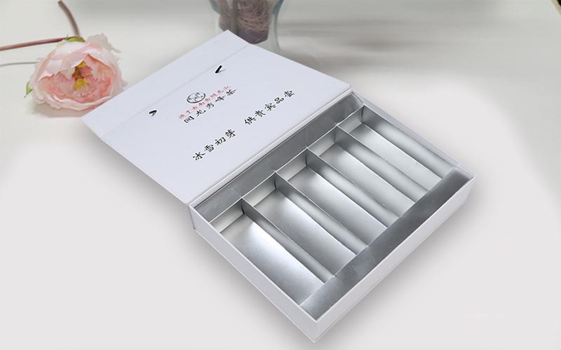 1.材質:盒子面紙採用157G銅版紙單面彩色印刷,覆亞膜裱1500G雙灰闆,盒子内托用黑色EVA開槽位放産品,盒型爲翻蓋禮品盒,整款包裝盒機器制作,盒型平整外觀精緻。