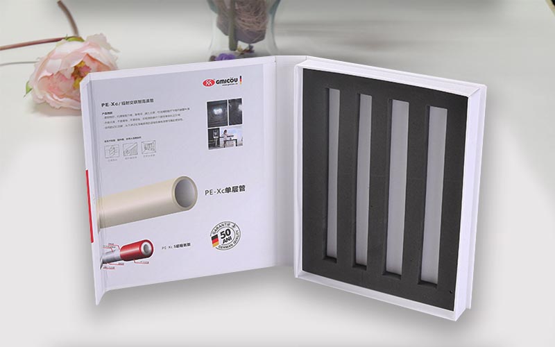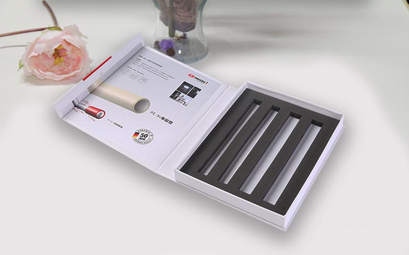 1.材質:盒子面紙用157G銅版紙單面彩色印刷覆亞膜.裱1500G雙灰闆内盒用銅版紙裱1500G雙灰闆内托黑色EVA 開模,和行爲翻蓋盒,整款盒子都是手工制作。