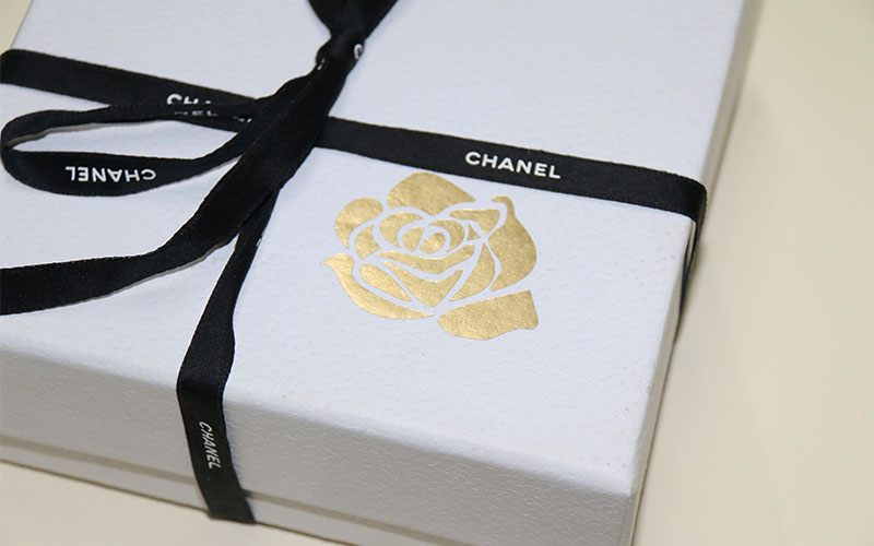 1.材質:品牌香水包裝盒定制,外盒材質採(cǎi)用180G白色特種紙,面紙燙(tàng)金色LOGO玫瑰花,(此款香水包裝盒高仿Chanel),盒内結構採用粉色香型拉斯草,盒型爲天地盒材質都一樣。組裝完系上彩帶蝴蝶結,香水包裝盒成型後裝入250G銅版紙做的手提袋内,手提袋單面啞膜,LOGO燙黑金激凸。